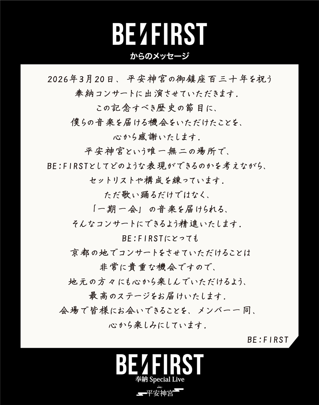 BE:FIRSTが魅せる歌と踊りを奉納として捧げます。